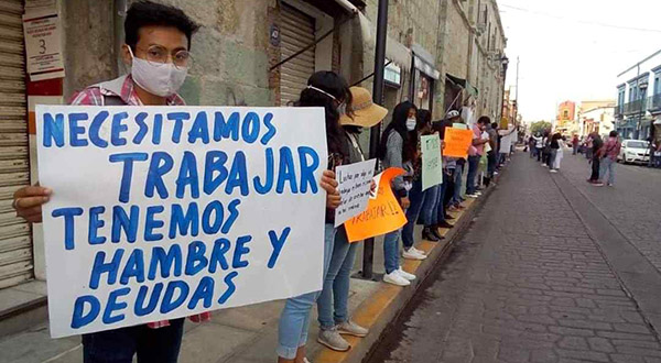 La emergencia sanitaria ha traído consigo un lastre de problemas adicionales a la de por sí preocupante situación en Oaxaca. El cierre de cientos o miles de establecimientos dejaron sin trabajo a otros tantos miles de trabajadores que, de la noche a la mañana, se quedaron sin el gasto para llevar a casa. Hoteles, restaurantes, empresas del transporte, de servicios turísticos, tiendas de ropa, calzado, etc., sería largo enumerar a las que han bajado cortinas, cuyos propietarios y empleados, ven con angustia la prolongación de las medidas de prevención y la suspensión de labores hasta fines de mayo.