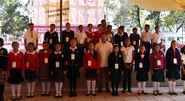 Román Santiago Mendoza, vocal ejecutivo de la Junta Distrital 03, explicó que la convención es un evento lúdico que ante la presencia de padres y maestros, para que los niños expresen sus ideas y hagan uso del derecho a la libertad de expresión, como una oportunidad para reclamar sus derechos.