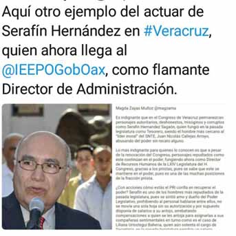 Gracias a información de portales del estado de Veracruz, en Oaxaca, se conoció el historial del nuevo Jefe de Administración y Finanzas del Instituto Estatal de Educación Pública (IEEPO) Serafín Hernández.
