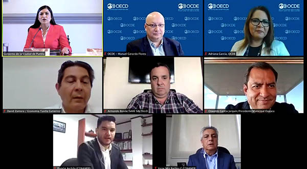 Oaxaca de Juárez, Oaxaca, a 22 de junio de 2021.- Con la representación del Ayuntamiento de Oaxaca de Juárez y a invitación de la alcaldesa de la ciudad de Puebla, Claudia Rivera Vivanco, el Presidente Municipal Oswaldo García Jarquín participó en el Segundo Encuentro Virtual de Mejora Regulatoria: “Estrategias Municipales para Promover el Crecimiento Económico”, donde compartió las acciones, programas y estrategias que el gobierno de la capital oaxaqueña ha implementado para mitigar los efectos de la pandemia de COVID-19, así como las políticas públicas para la reactivación de la economía local.