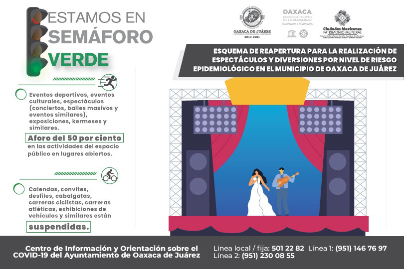 En semáforo verde, Ayuntamiento de Oaxaca aplica Esquema de reapertura para la realización de espectáculos y diversiones