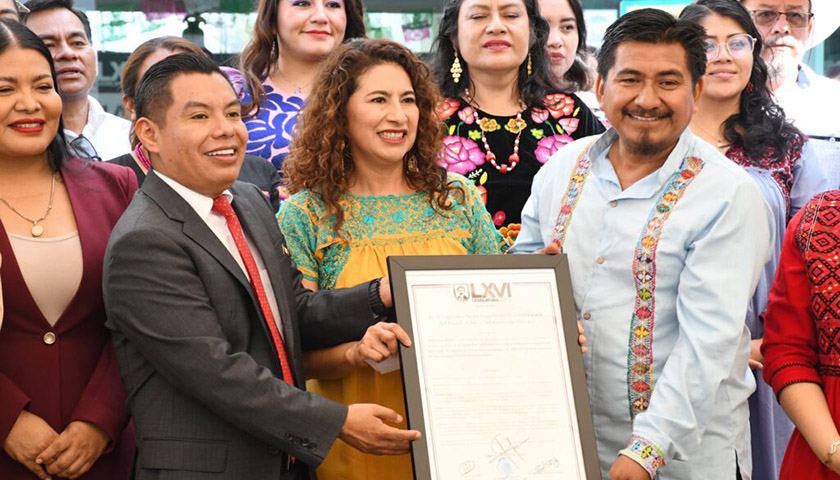 Entrega Congreso local Pergamino que reconoce como elementos culturales identitarios la iconografía y bordados de San Antonino Castillo Velasco