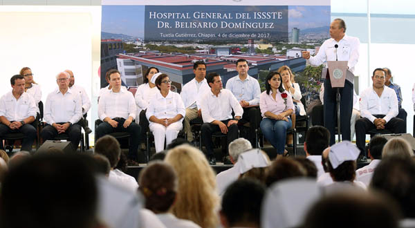 Con el propósito de implementar servicios de alta tecnología, el Presidente de la República, Enrique Peña Nieto, y el Director General del ISSSTE, José Reyes Baeza Terrazas, inauguraron el nuevo Hospital General “Dr. Belisario Domínguez” en Tuxtla Gutiérrez, Chiapas, con una inversión de 937 millones de pesos y para beneficio de más de 350 mil derechohabientes.