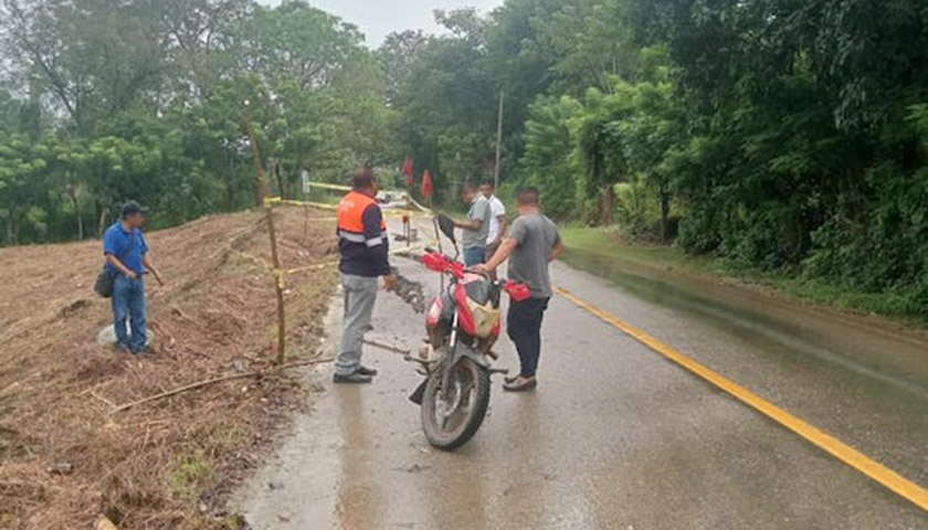 La circulación vehicular permanece habilitada únicamente por un carril, mientras personal de Protección Civil mantiene acordonada la zona para prevenir accidentes y garantizar la seguridad de las personas que transitan por este lugar de la Cuenca del Papaloapan.