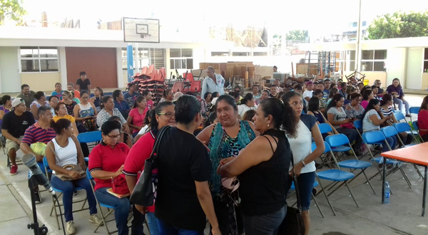 SALINA CRUZ, OAX. En conferencia de prensa padres de familia y profesores de la escuela Pedro Sainz de Baranda acusaron a funcionarios de IOCIFED de negarse a destinar el recurso para que la constructora concluya la obra de rehabilitación de los sanitarios, aulas y la electrificación.