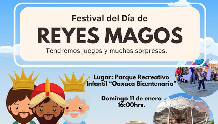 Tlalixtac de Cabrera, Oax. 9 de enero de 2026.- La Secretaría de Administración invita a niñas y niños de 1 a 10 años, a celebrar el Festival de Día de Reyes este domingo 11 de enero, en el Parque Recreativo Infantil Oaxaca Bicentenario.