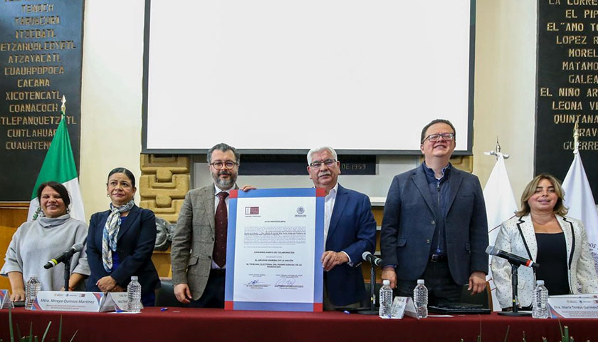 El convenio permitirá a ambas instituciones conjuntar esfuerzos y acciones para promover la organización y administración homogénea de archivos, preservar, incrementar y difundir el patrimonio documental de la nación, contribuir a la transparencia y rendición de cuentas, así como difundir el derecho a la memoria de la nación.