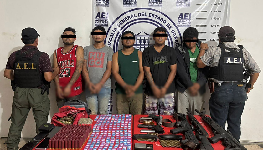 En el lugar detuvieron a cinco personas, se trata de: A.D.D., originario de Santiago Llano Grande, Jamiltepec; J.A.S., originario de Cuernavaca Morelos; J.D.M., de Pinotepa Nacional, así como S.N.G., y J.B.M., originarios de San Juan Cacahuatepec.