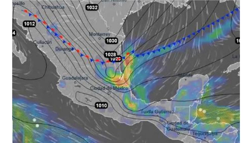 El ingreso de una masa de aire frío de origen ártico provocará un evento de norte prolongado, de muy fuerte a intenso, con rachas de 90 a 110 kilómetros por hora, principalmente en el tramo La Venta–La Ventosa, a partir del martes 30 de diciembre.