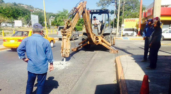 SALINA CRUZ. El administrador del Sistema de Agua Potable, Darío Toledo Castillejos encabezó los trabajos de reparación de la línea de 20 pulgadas en la avenida de los Cuatro Carriles.