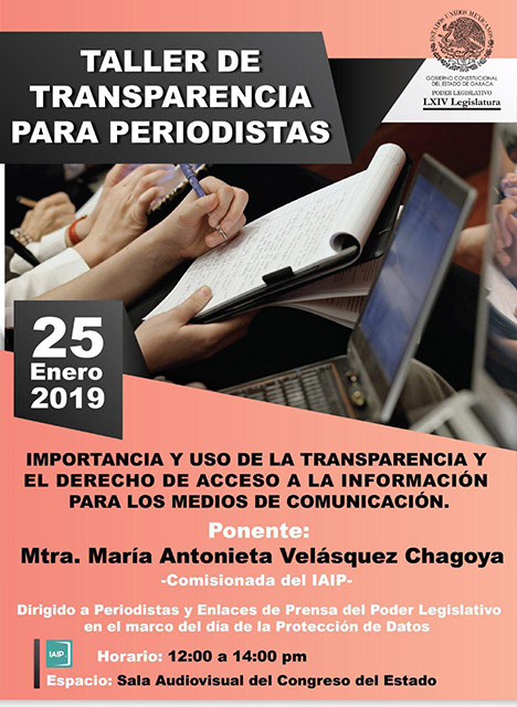 Es dirigido para periodistas y enlaces de prensa del Poder Legislativo, en el marco del día de la Protección de Datos y se realizará el vienes 25 de enero a las 12:00 horas, en la sala audiovisual del Congreso del Estado.