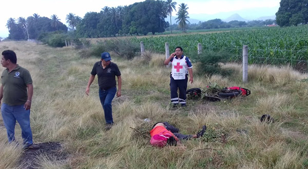 TEHUANTEPEC, OAX. Un motociclista perdió la vida luego de volcar presuntamente y salirse de la carretera quedando en una hondada.
