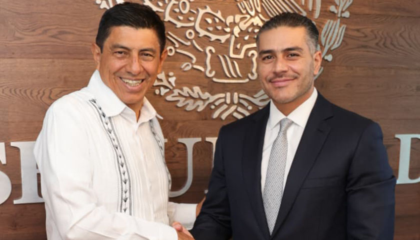 El secretario de Seguridad y Protección Ciudadana Omar García Harfuch, sostuvo una reunión con el Gobernador de Oaxaca, Salomón Jara Cruz, en la que evaluaron y dieron seguimiento a las acciones de seguridad desempeñadas en la entidad.
