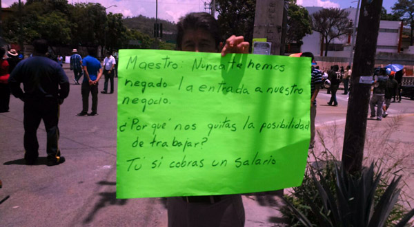 La excesiva tolerancia gubernamental con el magisterio oaxaqueño, que encabeza RUBÉN NÚÑEZ GINÉZ, empezó a hacer crisis en la sociedad civil oaxaqueña. Centenas de comerciantes bloquearon ayer la entrada a la Casa Oficial y el crucero que se ubica en Calzada Niños Héroes de Chapultepec y Calzada Porfirio Díaz, para exigirle al gobierno de ENRIQUE PEÑA NIETO y al de GABINO CUÉ MONTEAGUDO, acciones enérgicas en contra del magisterio, para evitar que sigan dañando la economía y el empleo de miles de personas que viven del comercio y el turismo. Desde hace un mes, de nueva cuenta, y engallados con su bandera de la Reforma Educativa y ahora, con demandas que nada tienen que ver con el entorno laboral, sino político, los mentores de la Sección 22, han seguido afectando con sus movilizaciones la vida de los oaxaqueños.