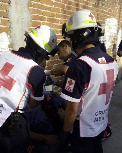 Paramédicos de la Cruz Roja fueron movilizados al lugar donde brindaron los primeros auxilios al lesionado, a quien luego de valorarlo, lo trasladaron a una clínica para recibir asistencia médica y su estado de salud es reportado como delicado.