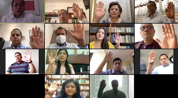 Oaxaca de Juárez, Oaxaca, 22 de abril 2020.- Durante la Sesión Ordinaria de Cabildo, efectuada este miércoles mediante videoconferencia, el Presidente Municipal Oswaldo García Jarquín hizo un llamado, en vísperas del 488 Aniversario del otorgamiento del título de ciudad a Oaxaca de Juárez, para que en esta etapa de emergencia sanitaria las y los oaxaqueños honren a la ciudad capital siendo buenos ciudadanos, acatando y respetando las medidas sanitarias para afrontar la pandemia por COVID-19.