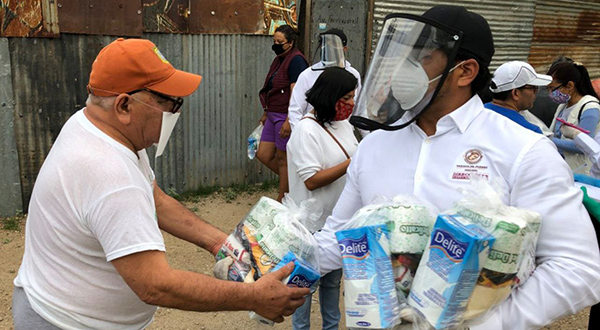 “Además de entregar alimentos y cubrebocas a las personas, estamos donando libros a niñas, niños y jóvenes para ayudarles a reforzar conocimientos académicos durante estos días de confinamiento”, resaltó la directora de Desarrollo Humano junto al subdirector de Juventud, Deporte y Recreación, José Manuel Vichido Luna.