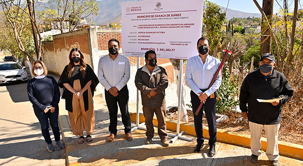 Oaxaca de Juárez, Oaxaca, a 22 de febrero de 2021.- El Presidente Municipal, Oswaldo García Jarquín, acudió a la agencia de policía de Guadalupe Victoria para entregar la pavimentación con concreto hidráulico del andador Flores Magón sector 5, refrendando el compromiso del Ayuntamiento de Oaxaca de Juárez con el mejoramiento de la calidad de vida de las familias capitalinas mediante obras de infraestructura urbana.