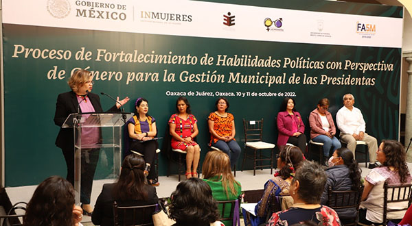 La consejera presidenta del Instituto Estatal Electoral y de Participación Ciudadana de Oaxaca, Elizabeth Sánchez González, inauguró este lunes el “Proceso de Fortalecimiento de Habilidades Políticas con Perspectiva de Género para la Gestión Municipal de las Presidentas”, realizado por el Instituto Nacional de las Mujeres (INMUJERES).