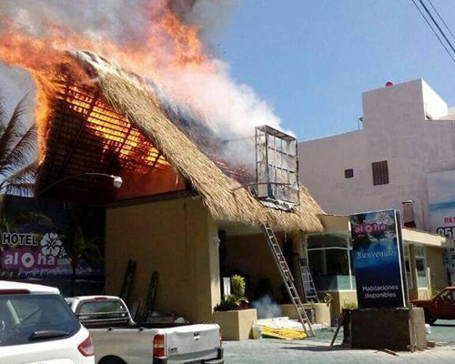 Daños materiales por varios miles de pesos y una persona con crisis fue el saldo del incendio en la palapa del hotel Aloha ubicado en el destino turístico de Bahías de Huatulco, el cual fue sofocado por personal del cuerpo de bomberos.