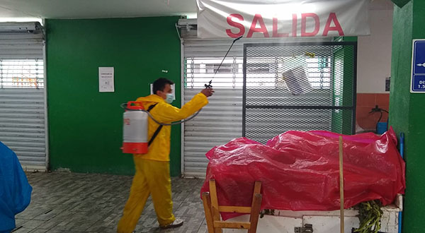 Asimismo, mediante la suma de esfuerzos con la Coordinación Ejecutiva del Centro Histórico se efectúan labores de saneamiento y desinfección al interior y exterior de los mercados mediante el empleo de hidrolavadoras y bombas de aspersión cargadas con soluciones biodegradables.
