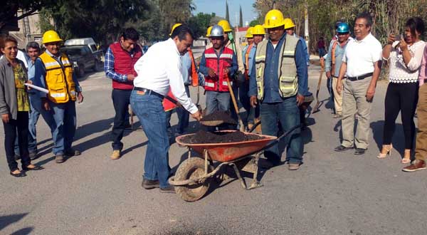 Huajuapan de León, Oax. – El edil de esta ciudad Manuel Martín Aguirre Ramírez, dio el banderazo del inicio del bacheo en la carretera que comunica a la agencia auxiliar Acatlima, la cual lleva al Colegio de Bachilleres de Oaxaca (Cobao) Plantel 08 y a la Universidad Tecnológica de la Mixteca (UTM).