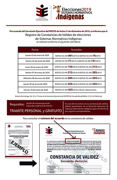 “Por ello, las autoridades electas que tengan su constancia de validez, deben acudir a la Secretaría Ejecutiva del IEEPCO para el registro correspondiente”, dijo.