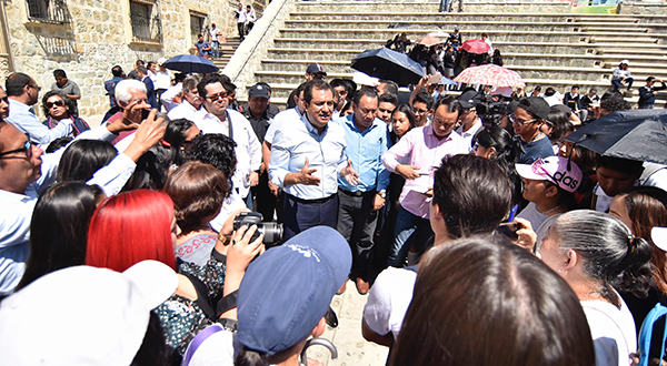 “Estamos haciendo nuestro mejor esfuerzo para que toda esta ola de inseguridad y de violencia disminuya, no podemos permitir que nuestra ciudad se deteriore en ese sentido, los factores son muchos, pero nuestra tarea es hacernos responsables y enfrentar a este tema y lo vamos a resolver”, subrayó Oswaldo García Jarquín junto al Comisionado Responsable de la Unidad de Educación Media Superior, Tecnológica, Industrial y de Servicios del Estado de Oaxaca, Ignacio Zárate Rodríguez, y al Subdirector de Proximidad Social, Marcos Fredy Hernández.