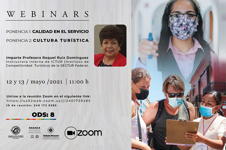 Continuando con la capacitación para los prestadores de servicios turísticos, el día 13 de mayo se llevará a cabo el webinar “Cultura Turística”, que tiene como objetivo sensibilizar al personal de contacto del sector turístico sobre la importancia de su rol en la proyección de la imagen del estado, fortaleciendo sus actitudes positivas, para hacer más placentera la estancia de las y los visitantes, y con ello, hacer de Oaxaca un destino turístico más competitivo y atractivo.