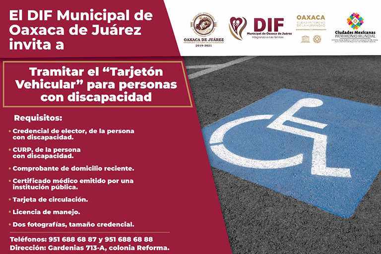 Oaxaca de Juárez, Oaxaca, 28 de julio de 2020.- El DIF Municipal de Oaxaca de Juárez reactivó el servicio de entrega de tarjetones a personas con discapacidad para que puedan disponer de espacios de estacionamiento de uso exclusivo, habilitados en diversos puntos de la ciudad capital.