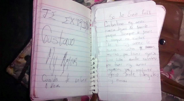 En una hoja de papel escribió: “30 enero Constantino my amor nunca te dejare de amarte porque siempre te amare y siempre me acordare de ti h amor te quiero por favor regresa a mi lado donde estabas oor favor my amor regfresa ya por favor regresa donde trabajabas my amor”(Sic) decía el escrito.