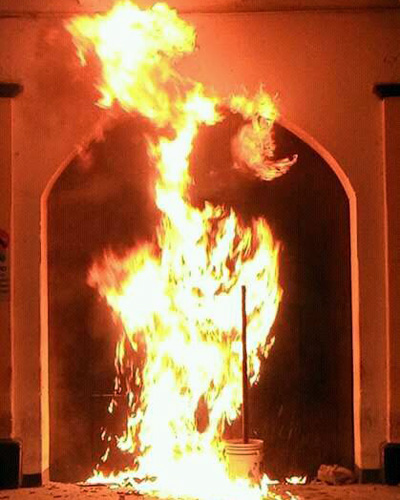 Las dos puertas de madera fueron rociadas con gasolina y después calcinadas para llamar la atención del presidente municipal, Saúl Vicente con el afán de que recapacitara y les pagara la quincena.