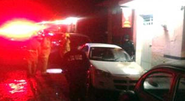Policías municipales que patrullaban en la unidad 107 fueron los primeros en llegar, percatándose que un automóvil Chrysler Stratus color blanco, con placas de circulación del Estado de México, se incendiaba del lado del asiento del chofer.