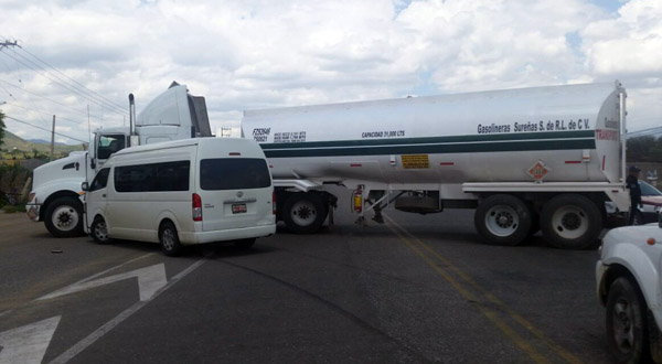 Profesores de la sección 22 del Sindicato Nacional de Trabajadores de la Educaciòn resultaron con lesiones al chocar la camioneta contra una pipa en la carretera federal que comunica al Istmo de Tehuantepec.