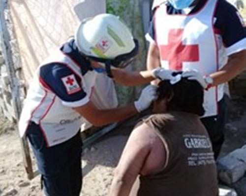 Para brindar el auxilio se aproximaron elementos de la Policía Municipal en la unidad 02 y paramédicos de la Cruz Roja Mexicana en la ambulancia 022 al mando de Alejandro Fontan. En el lugar los uniformados vieron que un hombre que vestía pantalón de mezclilla color azul y una camisa sin mangas color café, sangraba de una herida que se podía ver a simple vista en su cabeza.