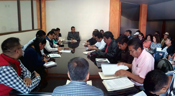 Concejales del Ayuntamiento municipal, encabezados por el edil Manuel Martín Aguirre Ramírez, y funcionarios de Servicios Educativos del IEEPO y la Secretaria General de Gobierno (SEGEGO), instalaron una mesa de diálogo con los trabajadores de la sección XXII, logrando acordar la liberación de los inmuebles tomados, tras recibir las propuestas como alternativas de solución al pliego de peticiones que motivaron sus acciones.