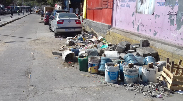 SALINA CRUZ, OAX. Montículos de basura y escombro dejaron los comerciantes, tras retirarse después de un año y cuatro meses permanecieron sobre la calle Mazatlán de la colonia Centro.