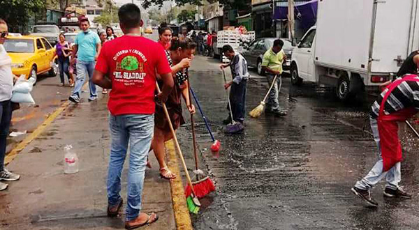 Limpian comerciantes las calles céntricas