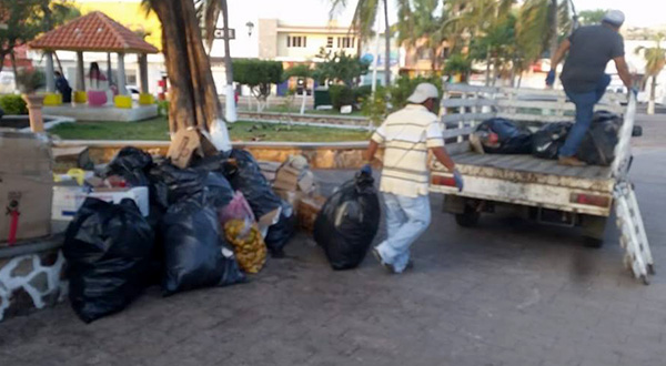 SALINA CRUZ, OAX. Un muladar dejaron los comerciantes que ocuparon el parque Independencia, por lo que el personal del ayuntamiento se abocó a realizar la limpieza.