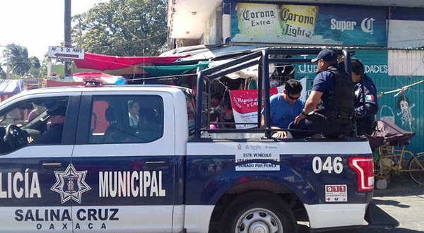 SALINA CRUZ. Tres personas fueron detenidas por elementos de la Policía Municipal, luego de ser descubiertos pagando con billetes falsos de diferentes denominaciones y puestos a disposición de la Procuraduría General de la República.