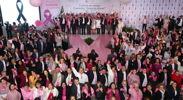 Por segundo año consecutivo el ISSSTE reunió a más de mil mujeres en el evento “Guantes Rosas”, en el que también destacó la participación de hombres quienes portaron el simbólico guante para sumarse a la batalla contra este padecimiento.