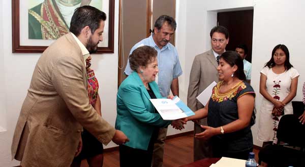 Al entregar de manera simbólica cinco de un total de 35 escrituras en beneficio de igual número de familias de la Colonia Ojo de Agua, la encargada de despacho del municipio de Oaxaca de Juárez, Rosa Silvia García Pineda, aseguró que con este tipo documentos, se da certeza jurídica a las familias, garantizándoles un patrimonio para sus hijos.