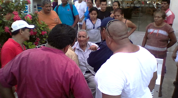 El adulto mayor no podía salir del automóvil, por lo que fue auxiliado por algunas personas quienes lo bajaron y lo llevaron a una banca que esta frente a una cafetería en donde temblaba.