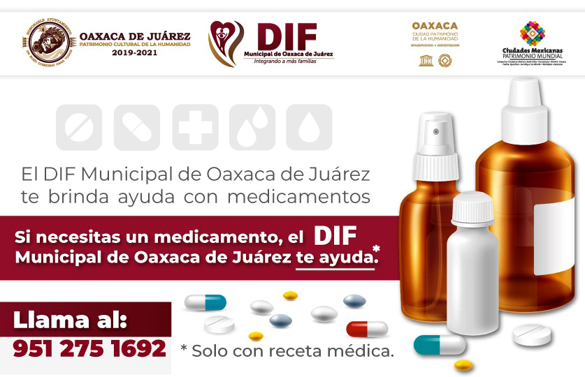 Oaxaca de Juárez, Oaxaca a 25 de mayo 2020.- Como parte de la atención permanente a las familias capitalinas y para proteger la salud de la población durante la contingencia sanitaria por COVID-19, el DIF Municipal de Oaxaca de Juárez pone a disposición de la ciudadanía un programa para la entrega de medicamentos gratuitos, cuyo objetivo es facilitar estos insumos a los sectores más vulnerables en apoyo a la economía familiar.