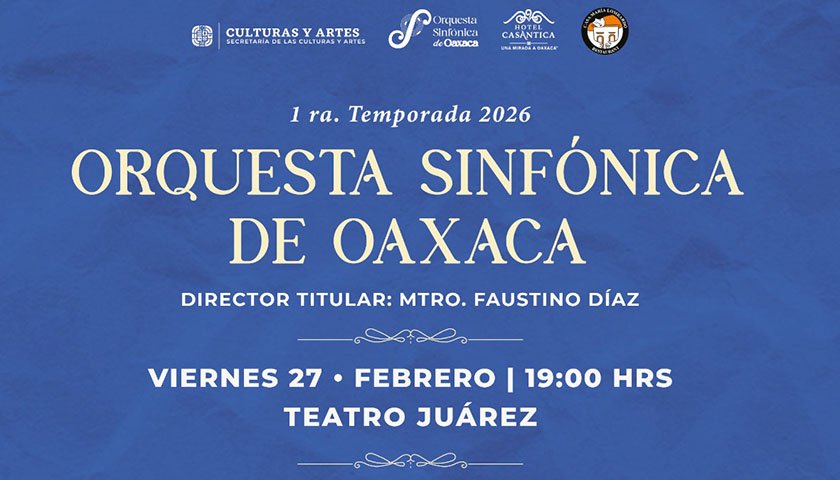 Oaxaca de Juárez, Oax., 26 de febrero de 2026.- La Orquesta Sinfónica de Oaxaca (OSO) ofrecerá un concierto de acceso gratuito este viernes 27 de febrero a las 19:00 horas, en el Teatro Juárez bajo la dirección de su titular, Faustino Díaz; como parte del 34 aniversario de su fundación.