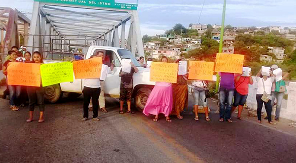 TEHUANTEPEC, OAX. Un reducido grupo de habitantes de la población de San Blas Atempa mantiene cerrada la carretera a la altura del puente de fierro sin que las autoridades intervengan para liberar esa vía de comunicación.