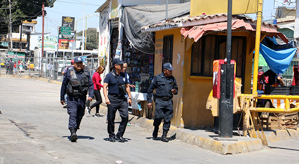 En esta primera jornada encabezados por el Subdirector de Seguridad Pública Municipal, Francisco Santiago José, los policías municipales recorrieron a pie las principales calles de la zona sur de la ciudad.
