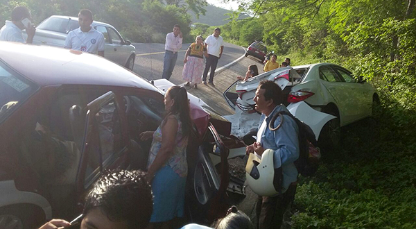 Cinco personas lesionadas y daños materiales por varios miles de pesos fue el saldo del accidente ocurrido en la carretera federal 190 en jurisdicción de Jalapa del Márquez perteneciente a Santo Domingo Tehuantepec cuando un vehículo frenó para no arrollar un animal, pero fue impactado por un taxi.