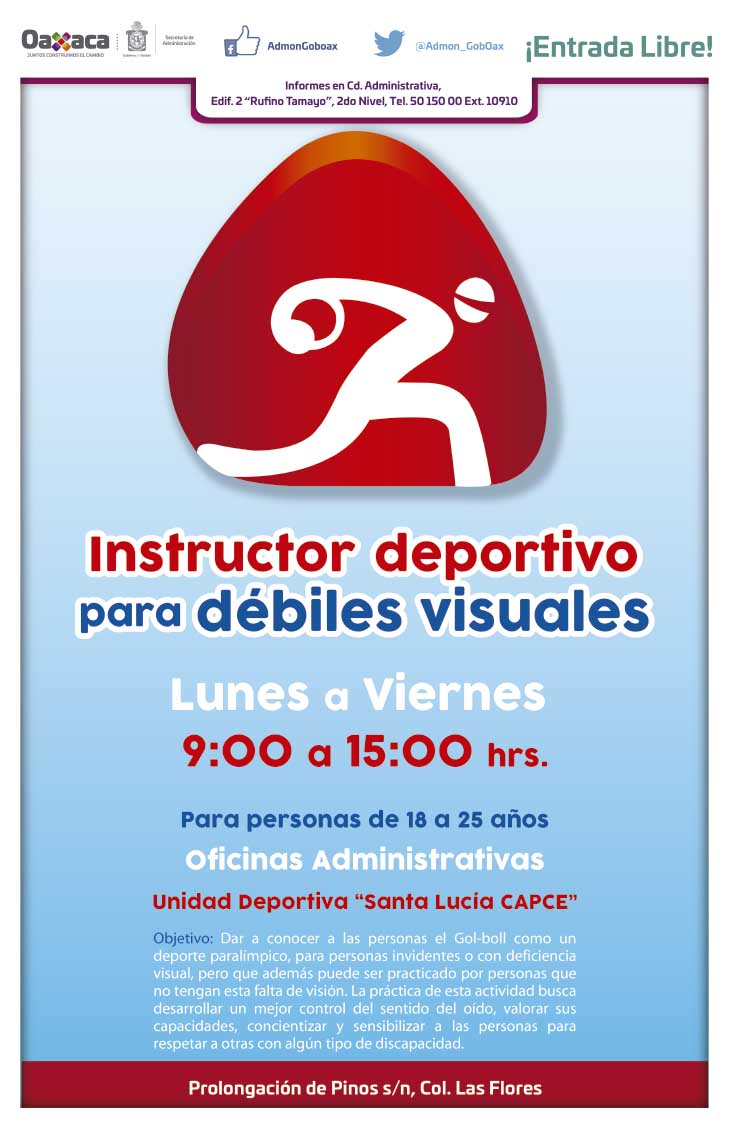 El Gobierno del Estado, que encabeza Alejandro Murat Hinojosa, a través de la Secretaría de Administración fortalece la inclusión social de las personas con discapacidad al incorporar a partir de este año clases de Gol-Bol dirigidas a personas con ceguera o debilidad visual.