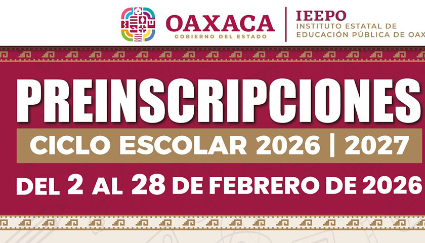 Oaxaca de Juárez, Oax. 15 de enero de 2026.- El Instituto Estatal de Educación Pública de Oaxaca (IEEPO) informa a madres y padres de familia, así como a personas tutoras, que el proceso de preinscripción del ciclo escolar 2026–2027 se realizará del 2 al 28 de febrero para los niveles Preescolar, primero de Primaria y de Secundaria.